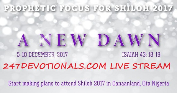 Therefore, at Shiloh 2017, every one of us must watch out for diverse encounters with God in the various sessions of this prophetic gathering, so as not to miss our catch-up moments for the dawning of a new day after the order of Elisha (2 Kings 2:10-12).